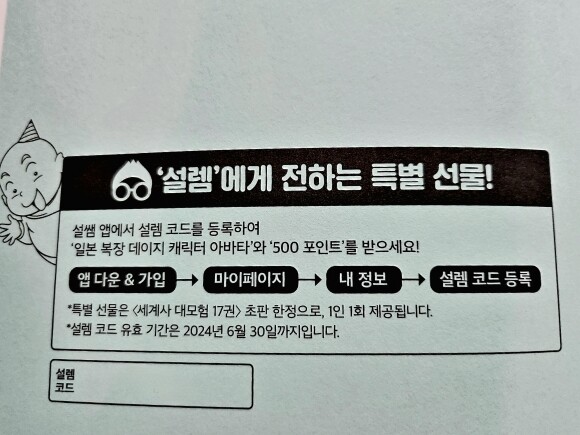 이 설렘 코드로 '설쌤' 앱에서 사용 간으한 스페셜 아바타 카드와 앱 포인트 500P를 받을 수가 있다고 하니.. 와우!! 기존에도 좋았는데 이번엔 완전 최고네요!!