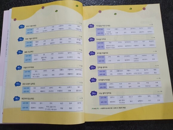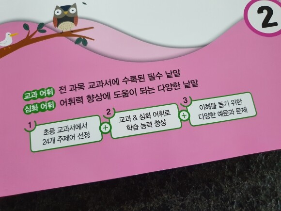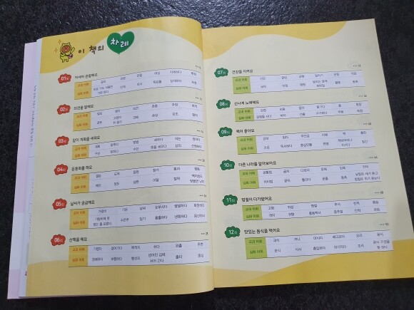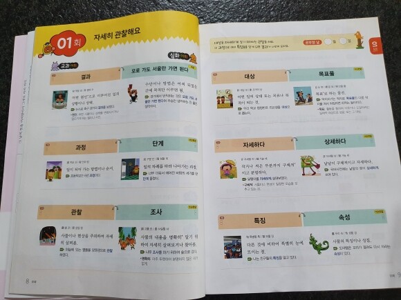 초등교과서에서 선정된 24개의 주제어로 교과어휘와 심화어휘도 배울 수 있고, 문제도 다양하여 이해하기 쉬우니 무척 좋더라구요. 또한 교과어휘와 연관된 비슷한 말, 반대말, 헷갈리는 말, 동음이의어, 관용어, 속담, 한자 성어까지 정말 왠만한 어휘는 다 배울 수 있게끔 구성되어 있어서 좋고 무엇보다 배운걸 학습으로 발전 할 수 있는 다양한 문제들이 가득가득 담겨져 있어서 좋았는데요~