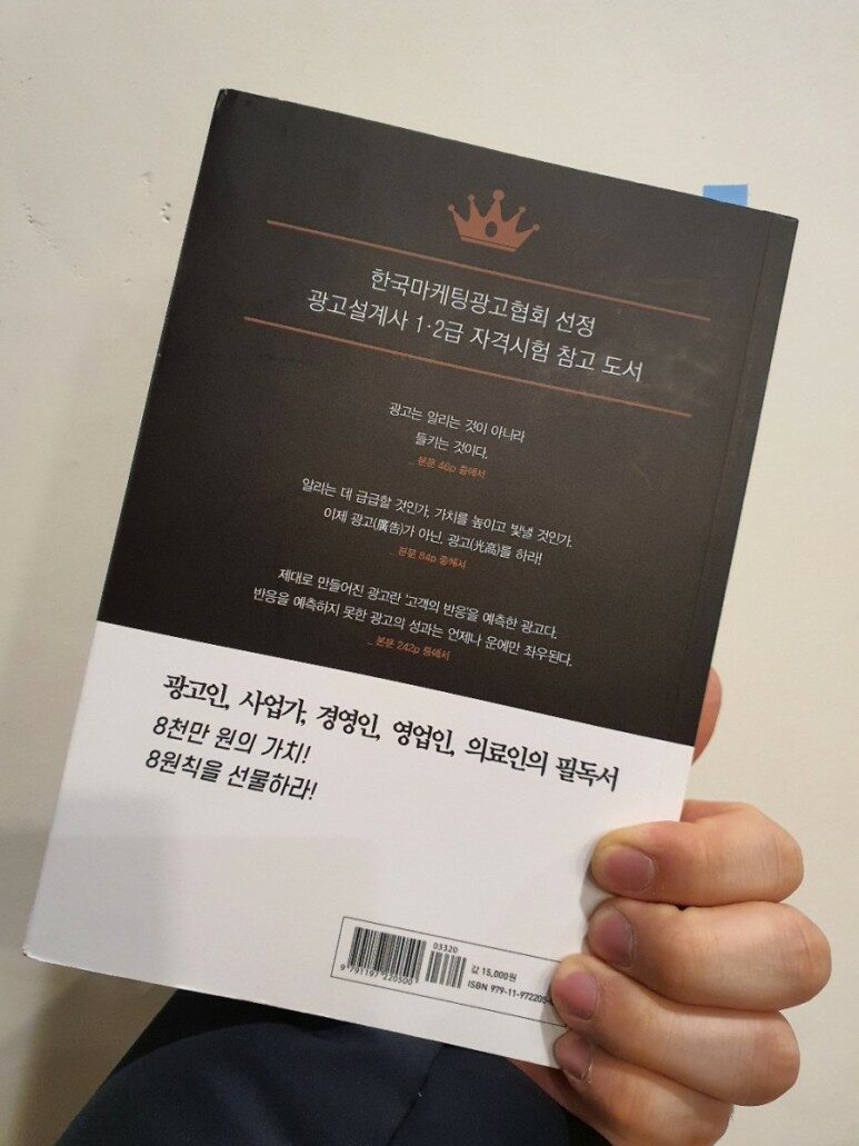 직관적인 제목만큼 책의 내용도 직관적이다. 서론, 본론, 결론 할 것이 없이 책은 시작과 동시에 광고의 8원칙을 내어 넣고 시작한다. 마치 숨길 것도 없다는 듯이 8원칙을 설명하고는 그에 따른 여러가지 예시를 내어 놓는다. 광고의 8원칙은 간단하다.
