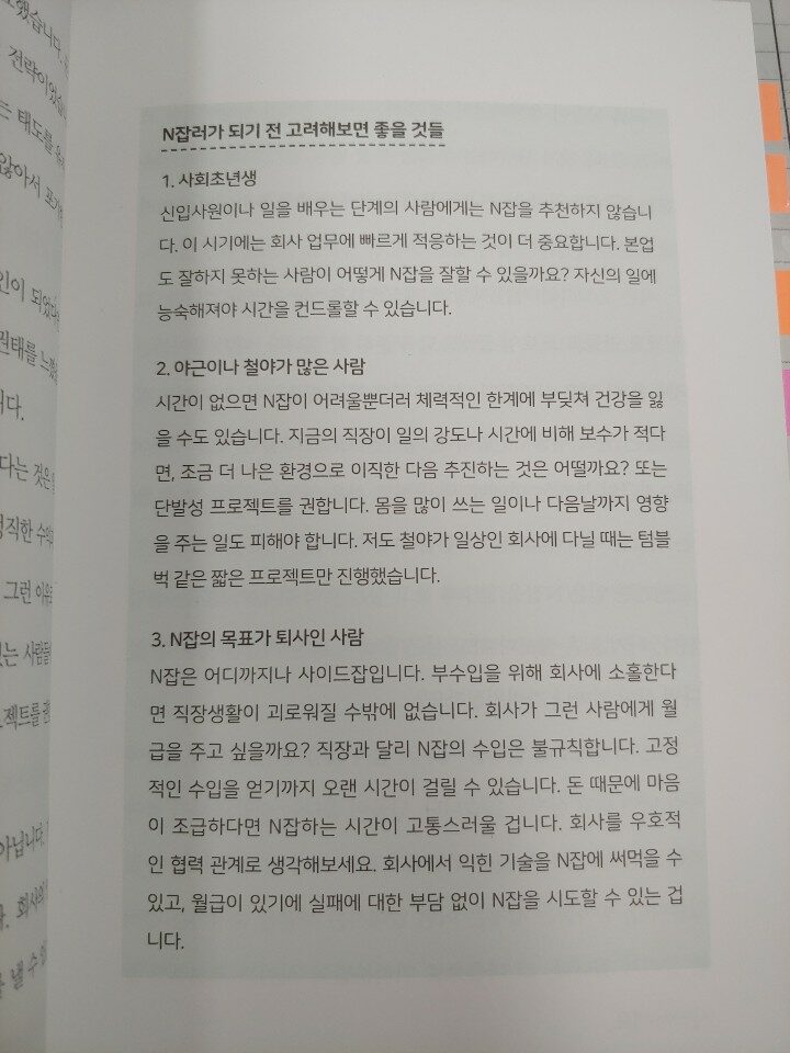 디자인을 전공하는 동생에게 선물을 주어야겠다. 동생도 근래 창업을 준비하고 있는 중인데, 이 책을 통해서 N잡러로 성장할 수 있도록 해야겠다. 물론, 동생의 경험상 안 할 확률은 높지만. 하하. 나도 나대로 N잡러가 되기 위한 프로젝트를 준비해봐야겠다.