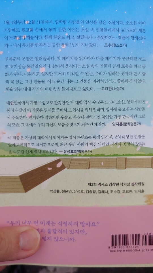 책을 접하고 "아, 이 생각을 못 한 건 아닌데, 아쉽다."가 첫 반응이었다. 내가 몸 담고 있는 곳의 이야기를 소설로 쓰고 싶단 생각도 많았는데, 이번 책이 딱 그랬다. 이 책은 넥서스 경장편 작가상 우수상 수상작인데, 한 대학의 입학처에서 일어나는 이야기를 담고 있다.