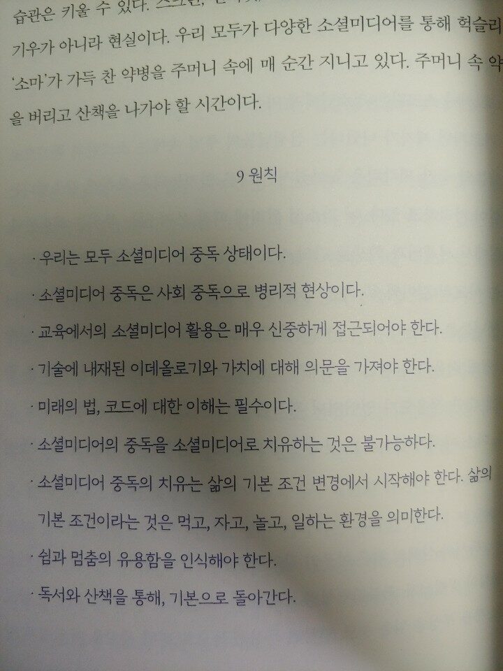 지신의 신 구굴, 교류의 신 페이스북, 거래의 신 아마존을 영접하기 위해 소셜미디어에 접속(21)한다. 지나치게 하나의 빠졌을 때 우리는 중독되었다고 표현한다. 이 책은 소셜미디어의 비판적으로 바라보는 책이다. 만약 이 책을 읽고자 한다면, 거대 기술기업에 의해 구축되는 네트워크 사회인 테크노폴리의 모습과 의미, 이용자가 주인이 죄지 못하는 주목 경제의 현황, 소셜미디어 중독의 부작용, 중독 해결을 위한 접근, 효율과 생산성, 경쟁을 우선으로 하는 사회에서 내버려진 가치를 초점으로 확인하길 바란다.