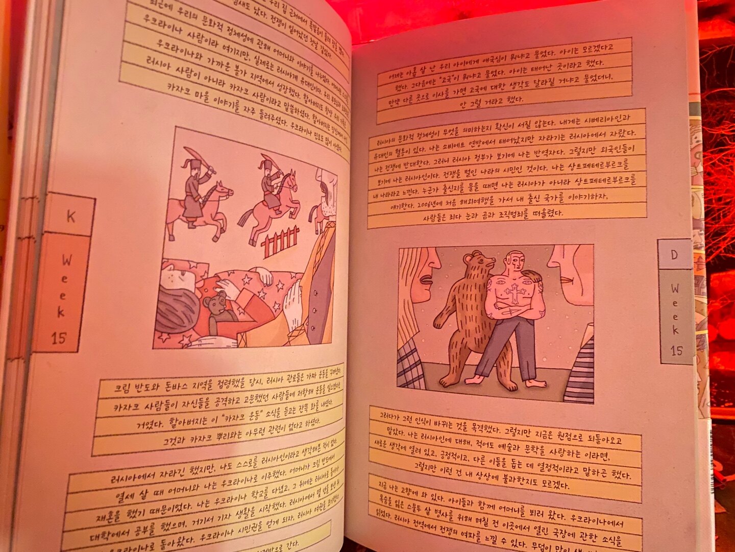 둘을 양 페이지에 맞붙여둠으로써 D와 K의 다면적 정체성과 경험을 강조하는 것이다.