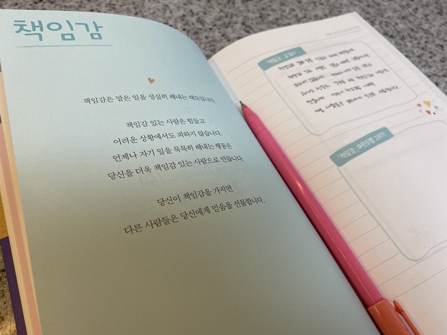 책임감, 너그러움, 공감, 꿈, 진실, 성실, 희생, 슬기로움, 지혜, 끈기, 용기, 사랑, 정의, 확신, 사려, 청결