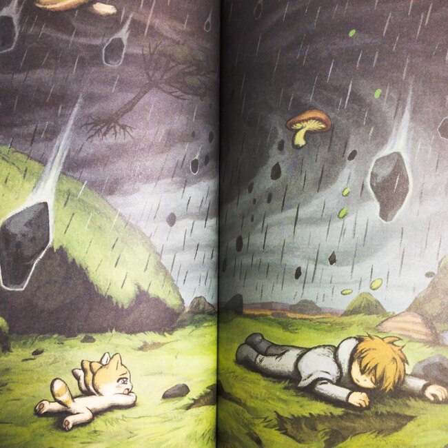 어떻게된 일이죠? 아리별과 그림자별은 운명의 상대가 아니었나요? 사랑하는 운명이 아니었나요? 모든 빛을 빨아들이는 그림자별과 알록달록 무지개색의 아리별은 양극단에 있는 존재였나 봅니다. 사랑이 아니었나보네요. 미스터앵의 짝사랑, 핀의 숨바꼭질 사랑, 링고의 한없는 사랑, 스몰의 첫사랑 그리고, 모나의 질투. 이 모든 아픔이 쌓이고 쌓이는 순간 그림자별은 어느새 아리별 곁으로 다가와서 폭발해버립니다. 이 모든 이들의 아픔을 에너지로 삼은 폭탄처럼 말이죠.