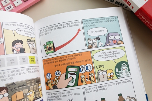 마케팅이 무엇인지, 마케팅 전략이 무엇인지, 전략 수립은 어떻게 해야 하는지, 시장과 소비자를 이해하기 위한 방법은 무엇인지.. 등등 차근차근 순서대로 설명을 해주고 있었는데요. 아무리 만화라지만 역시 대학 교재로 쓰이는 이론서였네요. 굉장히 체계적이라 전문 용어들이 많았지만 쉽게 이해가 되고 정리가 돼서 깜짝 놀랐네요.