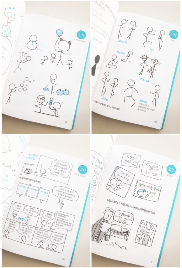 하나부터 열까지 너무 다 알려주시는 게 아닌가요? 이 책 한 권이면 막대 인간 드로잉 명인이 될 수 있을 듯합니다. 온갖 노하우와 팁을 한 권에 다 담아놓으셨더라고요. ㅋㅋ