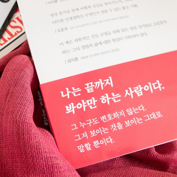 책에서 말하는 그의 직업은 절대 그렇지 않아 보이네요. 잔혹한 사건사고 장면을 수십 번 돌려봐야만 하기에 정신적으로 스트레스가 심하고, 보고 싶은 것만 보는 의뢰인의 고집에 과학적 대응은 불가능하기도 하고.. 가장 힘든 것은 자신의 분석 하나에 누군가 법의 심판을 받는다는 책임감인 듯하네요. 누구나 실수할 수도 있지만, 그는 절대 실수하면 안 되기에..