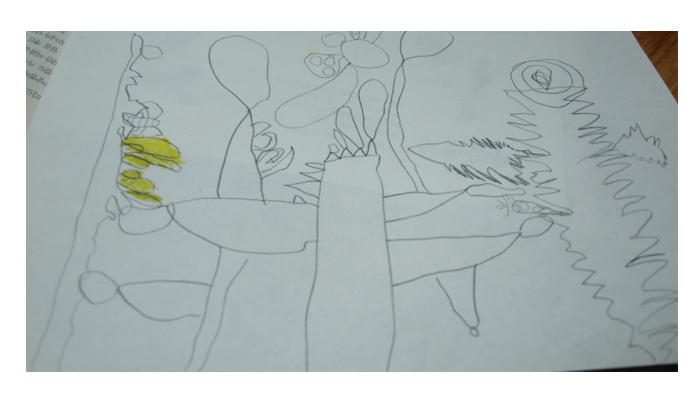 네가 무서워하는 파리지옥을 왼손으로 그려보자 했어요.
