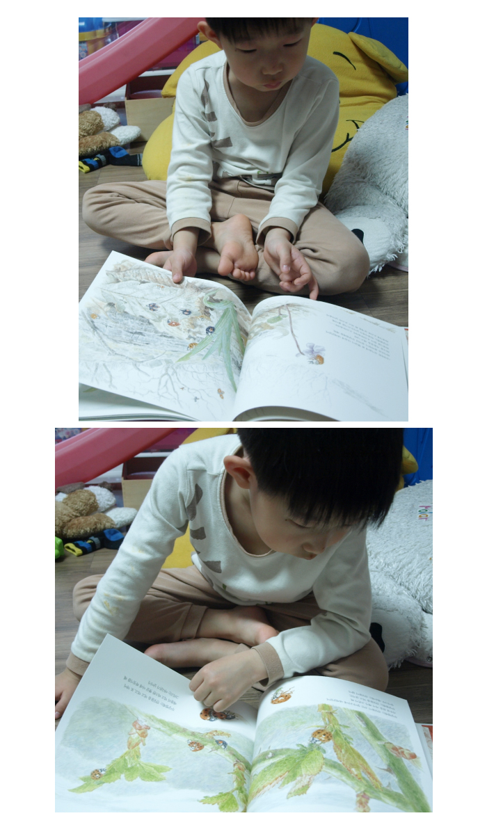 혼자 책 못읽습니다...ㅡㅡ  근데 요즘 한글을 하고 있기 때문에 아는 글자 나오면 짚고 읽느라 정신이 없어요.