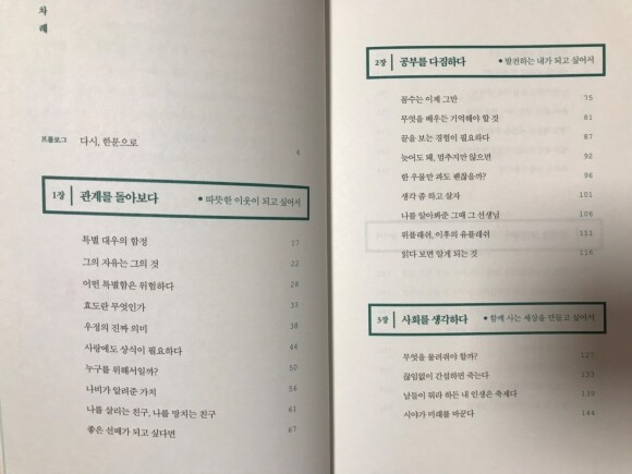 목차만 쭉- 훑어 봐도 느껴지는 이 책이 말하고자 하는 바는 '함께'이다.
