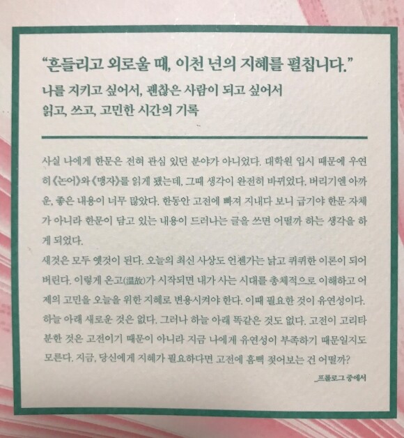 저자는 고전의 원문을 읽기 쉽게 풀어서 소개하고 현재를 살아가는 우리의 이야기와