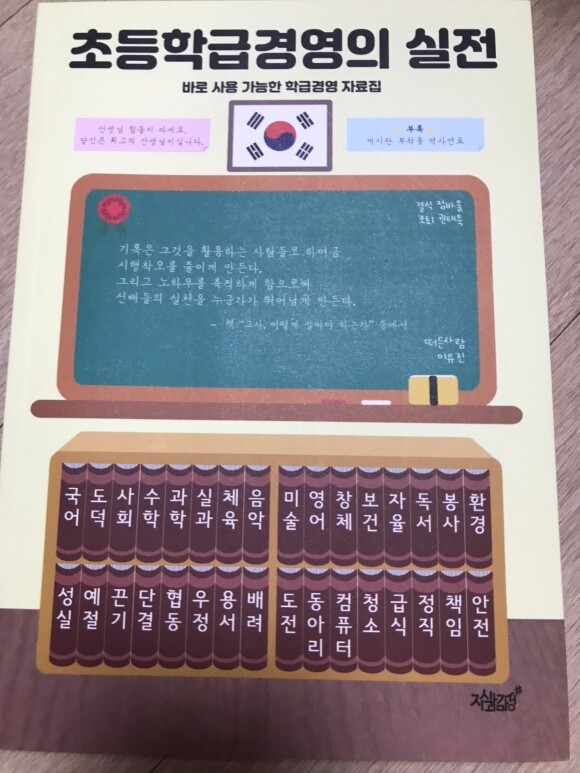 추억의 칠판과 칠판 위 태극기가 있는 책 표지를 보고 배시시- 웃음이 났다.