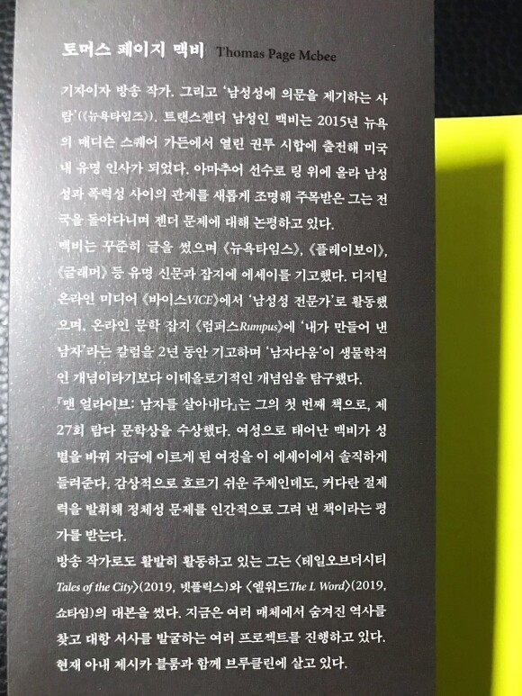저자 토머스 페이지 맥비에게도 일어났을 뿐임을 독자에게 서서히 인식시킨다.