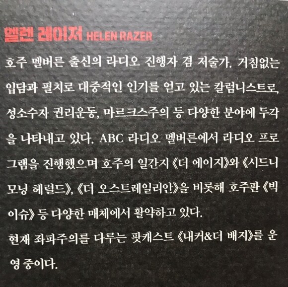 이 책의 여러 에피소드들이나 작가의 (때로는 지나치게 강렬한) 말은 충분히 그 역할을 다한다.
