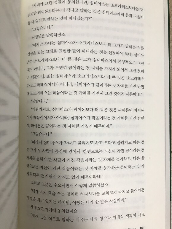 책은 소크라테스의 문답 형식으로 되어 있어 읽는 행위 그 자체로는 어렵지 않다.