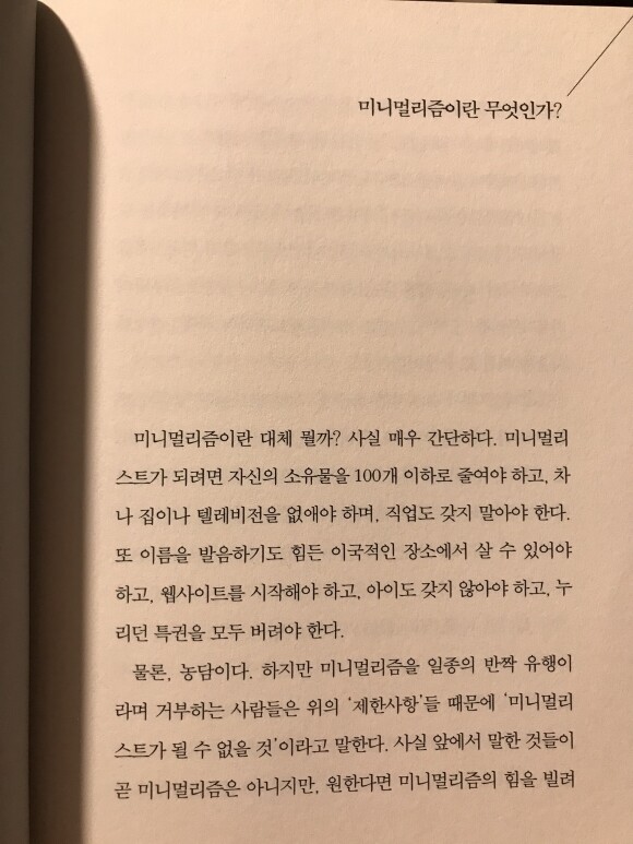 미니멀리즘은 행복한 삶을 위해 적극적으로 실천해야 할 라이프 스타일이라고 말한다.