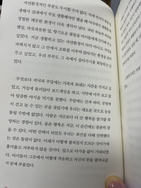 환경을 바꿀 수밖에 없다, 조금 더 가족과 시간을 보내고 다양한 활동을 하며 자유로움, 자립적으로 아이를 키우기 위해서