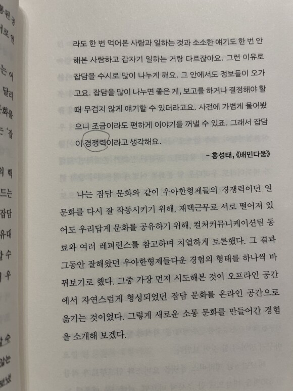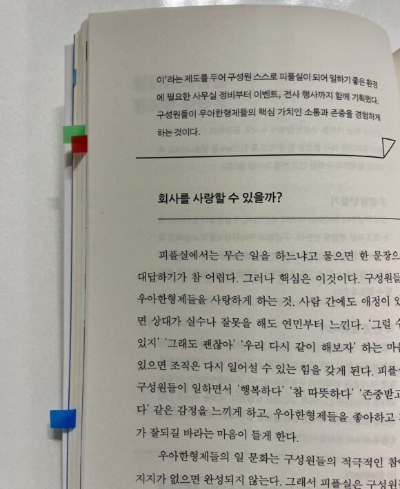 책을 읽은 후, 직장 동료들과 커피를 마시며 이러한 기업 문화에 대하여 이야기를 나눴다.