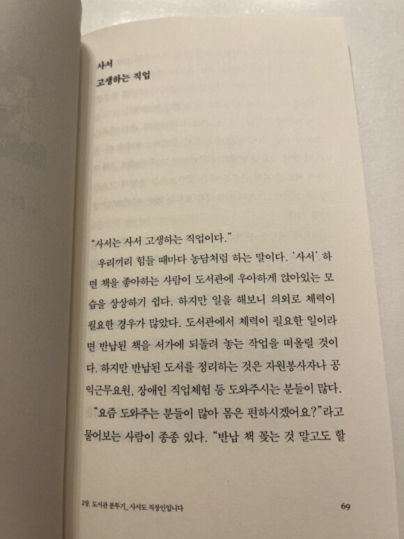 그리고 깨달았다. "아 사서도 그냥 직업군 중 하나구나, 책을 꼭 좋아하지 않더라도 충분히 할 수 있는 직업이구나."