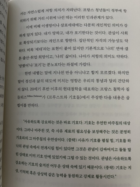 "생각의 방향을, 절망 상태를 어쩔 수 없는 운명으로 받아들이거나 기본적인 욕구를 포기하는 방향으로 이끌지 않도록 경계해야 하지 않을까. "