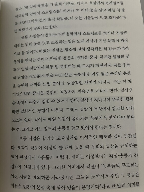 "사는 게 재미있으려면 즐거운 경험이 일정하게 지속성을 지녀야 한다.
