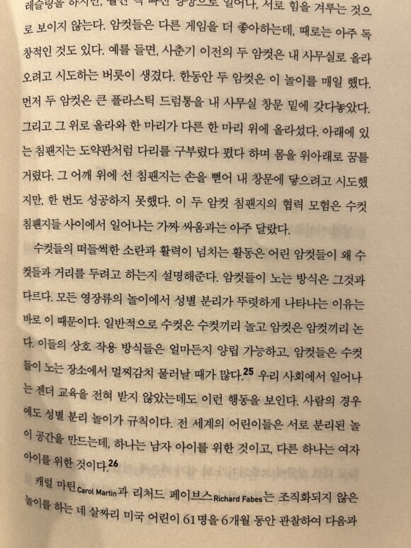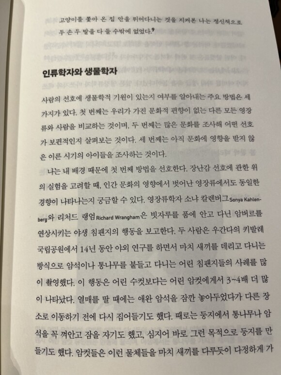영장류학자가 오랜 시간 연구를 통하여 알게된 사실들을, 침팬지와 보노보노를 통해 이야기하는 게 흥미롭고 재밌었습니다.