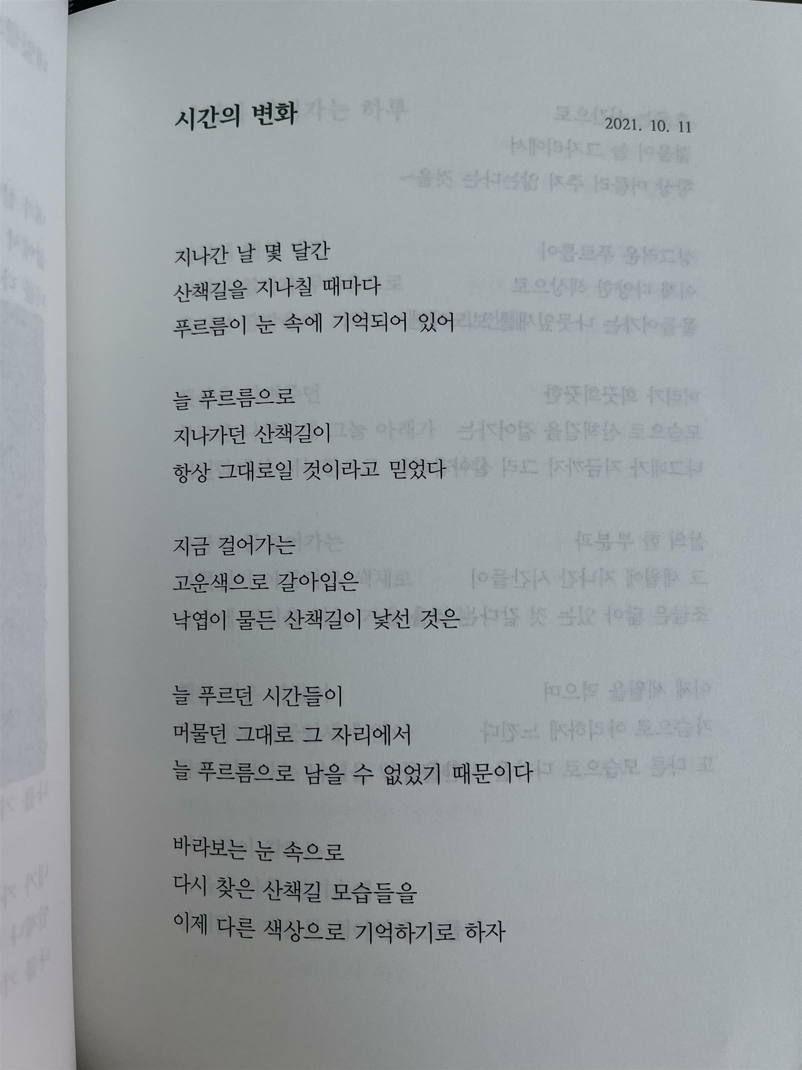 책을 읽으며 잠시 산책을 하는 기분을 느낄수 있었다.