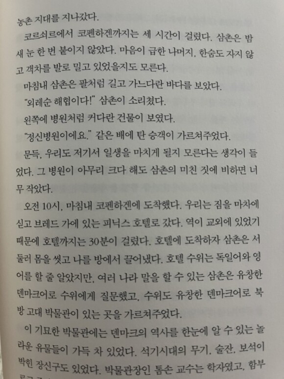 문득, 우리도 저기서 일생을 마치게 될지 모른다는 생각이 들었다. 그 병원이 아무리 크다 해도 삼촌의 미친 짓에 비하면 너무 작았다.