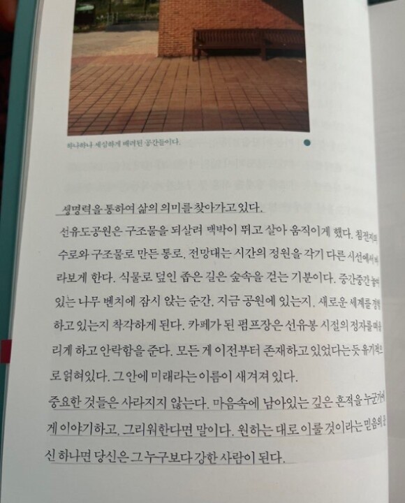 책을 따라 그 장소와 공간들을 만나다보면, 어느새 내가 그 곳에 있는 듯한 착각이 들었다. 친구와 담소를 나누는 듯이 이 공간을 지나가고 있었다. 눈으로 마음으로.