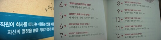 함께 일하고 싶은 팀장 2」. 이 책 제목처럼 호기심을 자극하는 책이란, 평소 불가능하리라 생각했던 일에 대한 해결책을 찾을 수 있을까하는 일말의 기대감 때문이라는 생각이 든다. 팀장이라고 하면 팀원 입장에서는 상사인데 이런 직장 상하관계에서 어찌 함께 일하고 싶다는 생각이 들도록 할 수 있다는 말인가. 아마 내 경험상 그런 관계를 여태 만나지 못했던 까닭이라 생각한다. 실제 직장생활을 해보면 조직 내 인간관계와 상사와의 관계가 생각처럼 쉽지 않다는 것을 알 수 있다. 수많은 책들이 조언을 해주고 문제점에 대한 진단과 해결책을 제시하지만 내가 실제 직면하고 있는 상황에 적용할 만한 방법을 찾아 적용해보기란 어려운 일이다. 그래서 이런 직장인을 위한 자기계발서는 어중간하게 참고할 것이 아니라 다양한 상황에 대한 다양한 해법들을 많이 만나고 실제 적용해보고 가장 효과적인 방법을 스스로 찾을 수 밖에 없다고 생각한다. 틈틈히 팀장 임무를 제대로 수행하기 위해 만나는 팀장 시리즈를 읽다보면 새로운 영감을 주는 책들이 있고 내가 처한 상황에 꼭 필요한 조언과 지식을 제공해주는 책도 있다. 여러 책들을 두루두루 읽다보니 이젠 이것 저것 욕심을 내기 보다는 한가지라도 현재의 내 역할에서 변화를 줄 수 있는 것을 찾아 실무에 적용해보는 것이 가장 생산적인 책읽기가 될 거란 생각으로 책을 대한다. 이 책의 원제가 「Creating Passion-Driven Teams」다. 그리고 열정적인 팀을 만드는 11가지 방법을 소개하고 있다. 사실 나자신의 열정을 지속하는 문제만큼 고민되는 일도 없는데 거기다 조직에 열정을 불러넣는 방법을 같이 고민해야하는 팀장은 정말 힘든 자리란 생각을 하게 된다. 이 책을 읽은 지금도 팀장이 열정에 불타는 불덩어리면서 행동파라면 열정적인 팀을 만들기는 어려운 일이 아니란 생각을 한다. 팀장이 열정으로 무장하고 팀에 그 열정을 불어넣어주는 것이다. 그런데 20년 이상을 『포춘』지 선정 500대 기업의 경영진들과 함께 직장 내 문제에 대해 연구하고 일해온 저자는 다음과 같이 결론을 내린다. 1. 열정은 만들어 낼 수 없다. 2. 열정은 누군가에게 요구할 수 없다. 3. 열정은 돈을 주고도 살 수 없다. 4. 열정은 거짓으로 있는 척할 수 없다. 열정은 자기 가슴 속에서 스스로 끄집어내야 한다는 것이다. 팀원 각자가 자기 안에서 그 힘을 꺼낼 수 있어야 한다는 것이다. 팀원들이 소중한 열정을 마음껏 펼칠 수 있는 환경을 만들어 주는 것이 바로 팀장의 역할이라는 것이다. 실례로 우리팀에 일은 똑부러지게 잘하면서 팀업무에 소극적인 직원이 하나 있다. 지금 현재의 업무를 다년간 계속 해오고 있어 업무 베테랑이긴 하지만 업무 외에는 특출나게 눈에 띄는 직원은 아니다. 평소 주어진 업무 외에는 적극적으로 나서지 않아 솔직히 열정을 가지고 일에 임한다는 인상을 전혀 받을 수 없는 직원인데 하루는 외부기관에서 우리 업무와 관련한 설명회가 있어 그 시간에 참가할 수 있는 직원을 찾다보니 우연히 그 직원과 함께 참가하게 됐다. 평소 자기의견을 잘 말하지 않던 직원이 그날따라 조목조목 자기 의견을 말하는 것이다. 자기 실무와 직접 연관된 내용이기도 했지만 관련 업무담당자들을 대표해서 자기가 지목되어 팀장과 함께 참가했다는 것이 동기부여가 된 것같은 인상을 주었다. 그 이후로 면담을 통해 자신은 똑같은 업무를 너무 오래 했기에 변화를 원하며 현 상태로 자신의업무에 변화가 없다면 퇴사까지 생각했던 것을 알게 되었다. 팀장이 열정으로 움직이는 팀을 만들고 싶다면 팀원 한 사람 한 사람의 내면을 들여다봐야한다는 저자의 말에 공감이 가는 상황이었다. 그 팀원은 이미 내면에 열정을 가지고 있었고 그 열정을 마음껏 펼칠 수 있는 환경을 만나지 못했던 것이다. 열정으로 움직이는 팀은 늘 사려 깊은 팀장과 언제나 팀 전체를 생각하는 팀원들이 만들어 간다는 것을 깨닫는 순간이기도 하다. 팀은 사물이 아니라 사람들로 구성되어 있기 때문에 팀장은 팀원들이 제각기 다른 환경 속에서 어떻게 반응하는지 성향을 제대로 파악하고, 사람들을 끌어당기고 힘을 불어넣어 주는 것은 어떠한 환경인지, 그들이 열심히 참여하고자 하는 열망을 갖게하는 것은 무엇인지를 알아야 한다. 또한 그들이 의욕을 잃고 떠나가게 만드는 환경이 무엇인지도 알아야 한다.(PP.22-23) 정원사는 자신이 식물을 자라게 할 수는 없다. 단지 식품이 잘 자랄 수 있는 환경을 조성해 주는 것이다. 그리고 이런 환경을 계속 유지해 주면 성장한다. 이와 마찬가지로 직장에서 최상의 결과를 얻기 위해서는 매니저와 팀장들이 늘 관심을 갖고 자기 팀원들이 가진 성향과 그들이 처한 환경에 대해 연구해야 한다고 저자는 말한다. 팀장이 팀원들에게 단지"성장하라!"라고 윽박지르는 것은 "성장하라!"라고 외치는 정원사와 같은 행동인 것이다. 그리고 팀장은 자신의 분야에서 최고가 되기 위한 기술을 배우기 위해 열정적인 학생이 될 것을 강조하고 있다. 팀장 스스로 동반주의자인지 출세주의자인지 점검하고 책에서 소개한 열정적인 팀을 만드는 방법 11가지 중에서 우