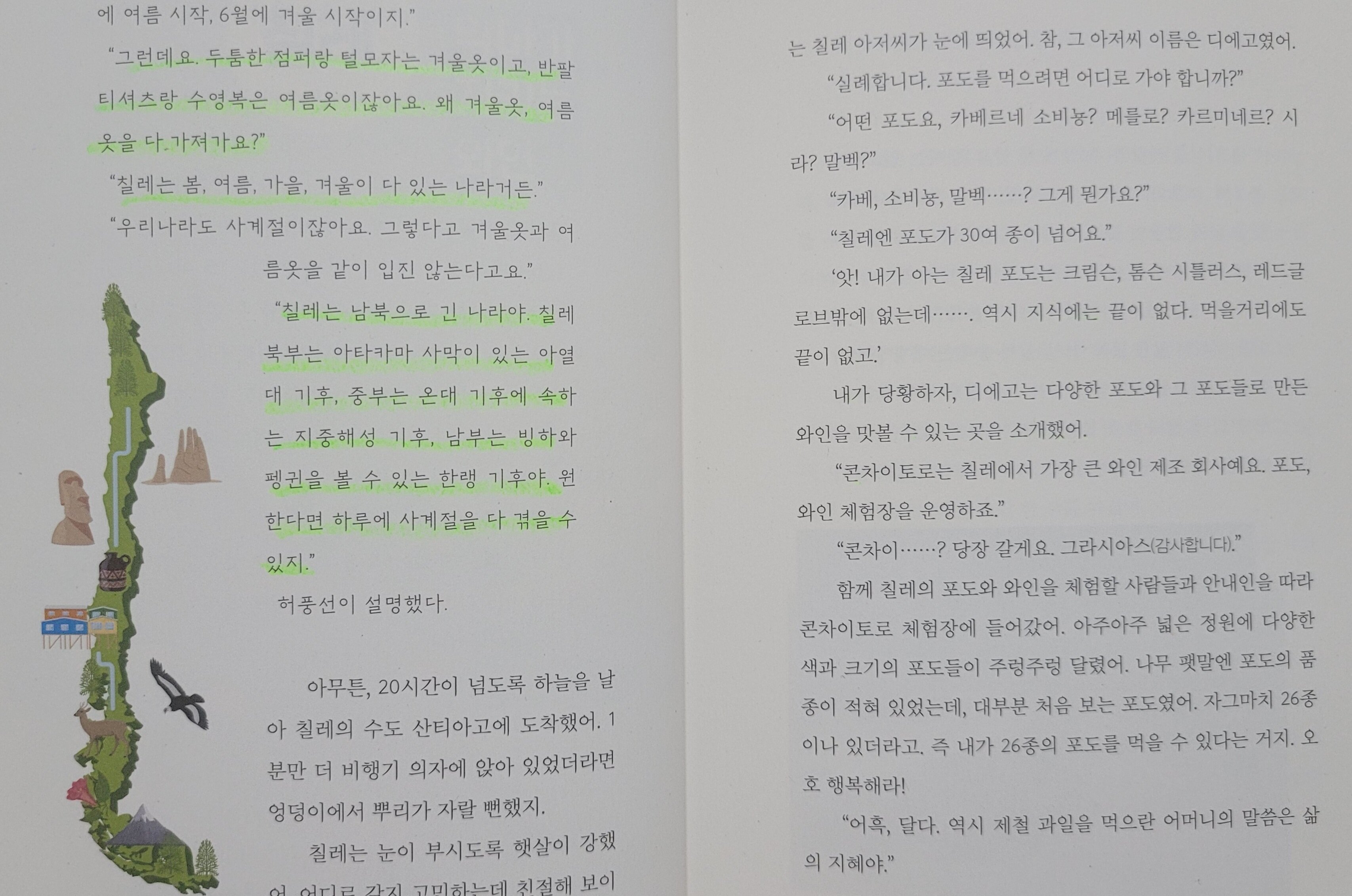“칠레는 봄, 여름, 가을, 겨울이 다 있는 나라거든.”