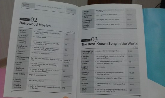 책을 펼치면 이렇게 단어장이 나옵니다. 단원별로 구성되어 있으며 장점은 원서형 독해집답게