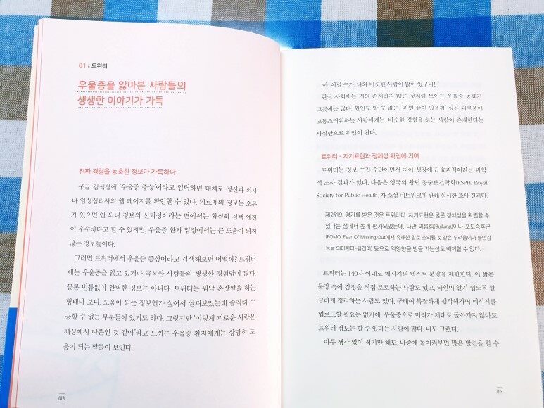 우울증은 아직 알려지지 않은 부분도 많아서, 전문가마다 의견이 분분하다. 도대체 어느 쪽이 옳은지 몰라서 헤매다 보면 오히려 상태가 나빠질 수도 있으므로 몰라도 되는 것은 모르는 편이 낫다. 이를테면, 정신과 의사 중에서도 항우울제를 먹어야 한다는 사람과 먹지 않는 편지 낫다고 말하는 사람이 있다. 양쪽 모두 일리가 있는 듯해서 어떻게 해야 할지 헷갈린다. 이때 착각해서는 안 되는 것이 있다. 내가 들어야 할 것은 내 주치의의 의견이며, 일면식도 없는 책 속 정신과 의사의 말은 중요하지 않다는 점이다. 인터넷도 마찬가지인데, 정보를 있는 그대로 받아들이는 일은 좋지 않다. 전부 참고하는 정도로 끝내야 한다. (p.89)