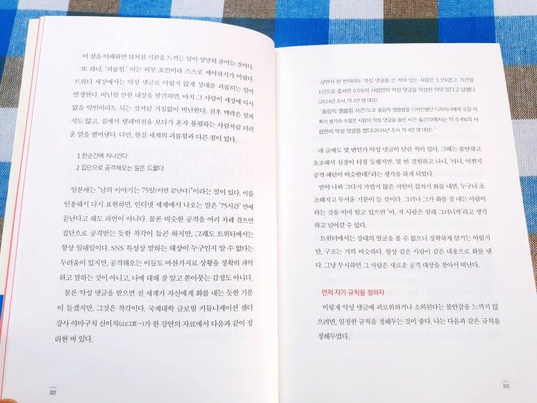 각양각색의 사례들을 살펴보면서 참 다양한 생각들이 머릿속을 스쳐 지나갔다. 남에게는 관대한 잣대가 왜 나에게만 향하면 철두철미해지는 걸까. 힘든데도 힘든 내색 전혀 없이 어떻게든 문제를 해결하려 무진 애를 쓰고, 문제가 일어나면 타인를 탓하기보다는 내 자신을 먼저 탓하고, 혹시나 내가 뭘 잘못하지는 않았는지 나 자신을 되돌아보기 바쁘다. 나 자신을 사랑하라는데, 유독 나에게만 혹독하다. 저자는 말한다. ‘양보’는 일반적으로 보다 많은 ‘존중’ 혹은 ‘상호 이익’을 가져다주기보다는 점점 더 많은 ‘부득이함’과 ‘억지스러움’을 가져다준다고. 이렇게 마음속에서 진정으로 원하는 것을 외면하다 보면 스스로를 싫어하게 되거나 세상에 원망이 쌓여서 결국 상처투성이가 되고 만다. 무작정 화합만을 중시한다면 우리는 더욱 많은 상처를 받는다. 용기를 내어 평화의 가면을 벗겨낸 뒤 문제의 원인을 살피지 않는다면, 그리고 무작정 상대방의 기대를 충족시키려고만 한다면 끊임없이 스스로에게 생채기를 내게 된다. 그러니까 이제부터는 남에게만? 아니, 나에게도! 당신 자신에게도 좋은 사람이 되어보자! 사양은 사양합니다.