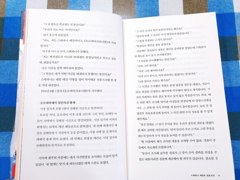 책은 20년 전 수사오류가 드러난 살인사건을 재수사하는 과정에서 죽은 자들의 진실을 밝혀내고, 모든 등장인물들이 단절된 관계를 다시 회복하고 속죄와 화해의 길로 나아가는 모습을 시종일관 긴장감 있게 풀어나간다. 제목으로 쓰인 <스테파니 메일러 실종사건>은 이 소설의 출발점이자 20년 전 잘못된 결론을 내린 수사의 새로운 출발점으로 벽돌책이라 이를 만큼 두꺼운 책에는 수수께끼 같은 사건들이 꼬리를 물고 이어진다. 아, 이 책 뭐지?! 몰입감이 장난아니다! 727페이지에 이르는 두께의 압박에도 아랑곳하지 않고 책장이 팔락이며 거침없이 넘어간다. 마치 강물을 거슬러 오르는 연어들처럼 현재에서 유유히 흘러가던 시간은 현재에서 과거로 다시 현재로, 현재와 과거를 빠르게 넘나들며 행보를 이어간다. 스테파니는 도대체 무엇을 보고 그들이 잘못된 결론을 내렸다고 주장했을까?