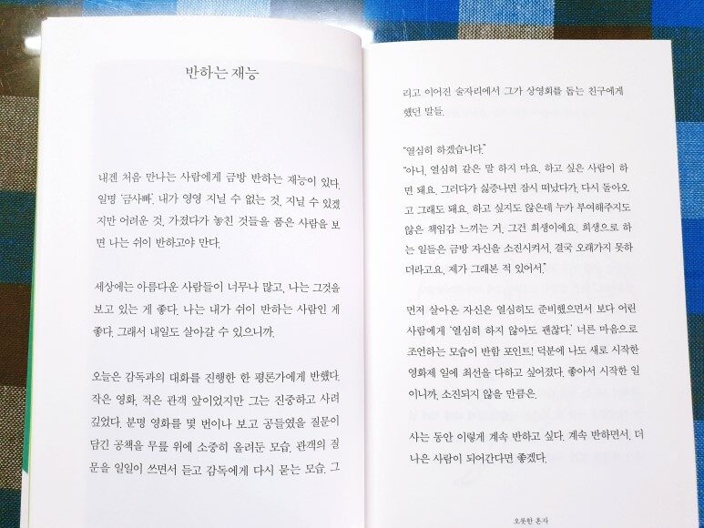 ‘입고 싶은 거 입으면 되지. 추고 싶으면 춤추면 되지.’ 자기 자신과 잘 노는 사람, 혼자서도 일상이 로맨스인 사람은 바로 이 책의 저자 도상희. 이 책은 그녀가 홀로 살아온 세월의 기록이다. 대단하거나 화려하진 않지만 그래서 더 소중한, 솔직하고 다정한 한 사람의 세계를 만나볼 수 있다. 세상에 상처 받아도 기어이 세상과 또다시 사랑에 빠지고, 두 눈을 빛내며 자신이 반한 존재들에 대해 얘기하는 그녀는 일명 금사빠. 세상에는 아름다운 사람들이 너무나 많고, 그녀는 그것을 보고 있는 게 좋다. 자신이 쉬이 반하는 사람인 게 좋다. 그래서 내일도 살아갈 수 있으니까. 사는 동안 이렇게 계속 반하고 싶다. 계속 반하면서, 더 나은 사람이 되어간다면 좋겠단다. 그녀는 애써 꾸미려고 하지 않는다. 아무렇지 않은 듯 담담하게 있는 그대로의 모습을 두런두런 담아낼 뿐이다. 그래서 더 좋았다. 그런 모습들이 묘하게 눈길을 잡아끌었다. 평범한 일상 속에서 찾아낸 소중함이랄까. 어느 날과 다를 것 없는 일상이 소소하게 위로가 되어온다.