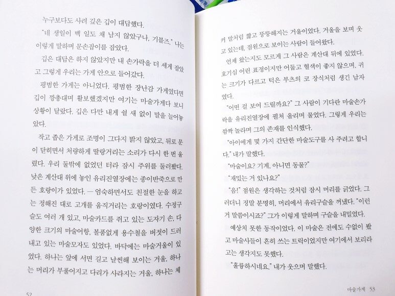 “이게 대체······?” 아이리스는 열쇠를 집어 들었다. 한쪽 면에 ‘547’이라는 숫자가 각인되어 있었다. ‘클리블랜드 퍼스트뱅크’라는 작은 글자들이 숫자를 둥글게 둘러싸고 있었다. 아이리스는 열쇠를 돌려보며 담배를 빨아들였다. 오랫동안 살펴볼수록 이 열쇠가 지하의 금고실에 있는 대여금고의 열쇠라는 생각이 강해졌다. 문 열쇠라기에는 너무 작은 데다, 숫자까지 있었기 때문이다. 아이리스는 담배를 재떨이에 비벼 끄고, 서랍을 잡아당겼다. 레이먼은 은행이 팔렸을 때 모든 금고실의 열쇠가 사라졌다고 말했었다. 어쩌면 그동안 수전의 책상에 틀어박혀 있었는지도 몰랐다. (p.101)