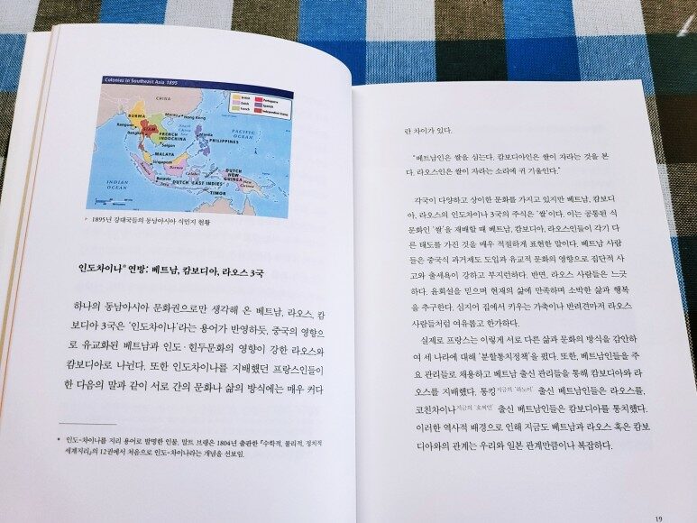 베트남, 캄보디아, 라오스 3국은 프랑스령 인도차이나 연방이 되기 수백 년의 시간 속에서 그들만의 문화와 삶의 방식을 만들어냈다. 그중 쌀과 액젓을 중심으로 하는 식문화는 오랜 그들의 지혜와 삶의 해답이 녹아 만들어진 것이다. 하지만 프랑스 지배를 받은 지난 100여 년간의 역사로 인해 베트남, 캄보디아, 라오스에서는 19세기 이전에 없던 식문화를 새롭게 탄생시키고 유지하고 있다. 커피와 누들, 맥주, 이 세 가지가 바로 인도차이나 연방 시절에 새롭게 탄생되거나 변형된 식문화이다. (p.31)