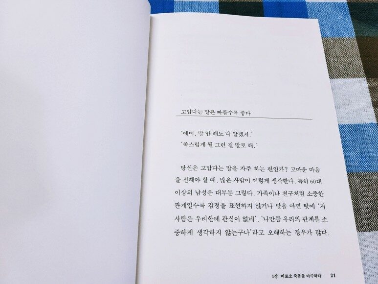 지나간 시간은 결코 다시 오지 않는다. 우리는 별생각 없이 ‘나중에’라고 말하며 지금을 뒤로 미루는 경향이 있다. 지금 놓쳐버린 이 순간이 나중에 생각하면 가슴 시리도록 아픈 후회가 된다는 사실을 모른 채 말이다. 지금 내 옆에 있는 사람을, 이 시간을 영원히 잃을 수도 있다는 사실을 잊어서는 안 된다. (p.194)