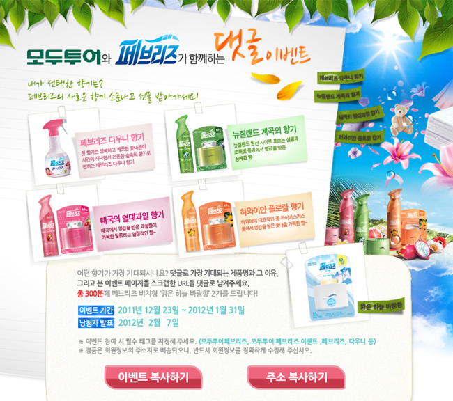 모두투어와 페브리즈가 함께하는 댓글 이벤트