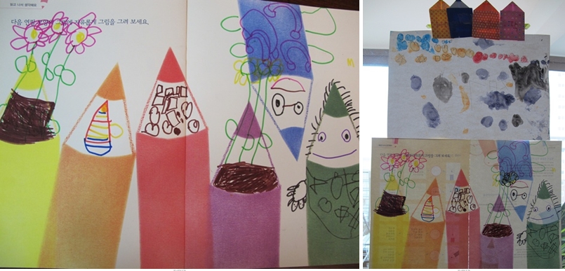 아이들은 저마다 책에서 인상적인 그림을 그리거나