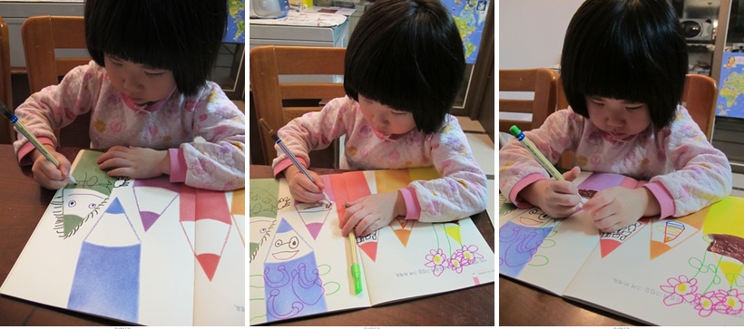 색연필을 이용해 한 페이지씩 각 그림과 글이 어울리게