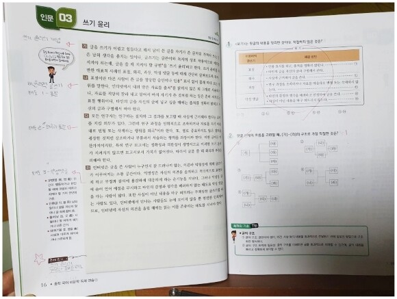 띄어쓰기나 원고지 쓰는 법을 배우는 부분,