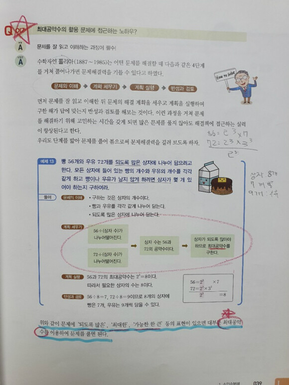 두수의 최대공약수를 구하는 방법을 푸는 과정에 설명과 함께