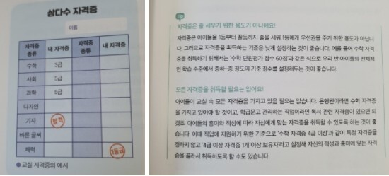 도서 대출건수 등 아이들이 평소에 하는 학급 활동으로 자격증 급수를 정해서 원하는 직업을 갖기 위해서는 열심히 노력해야 한다는 것을 느낄 수 있도록 하셨더라고요.