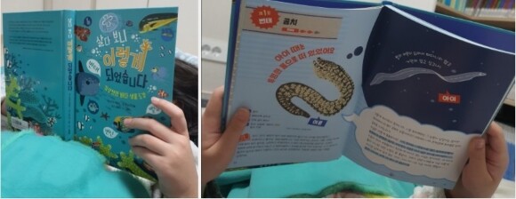 누워서 읽고 앉아서 읽고 신기한 바다 생물 도감을 밤12시 넘어서 읽었어요~