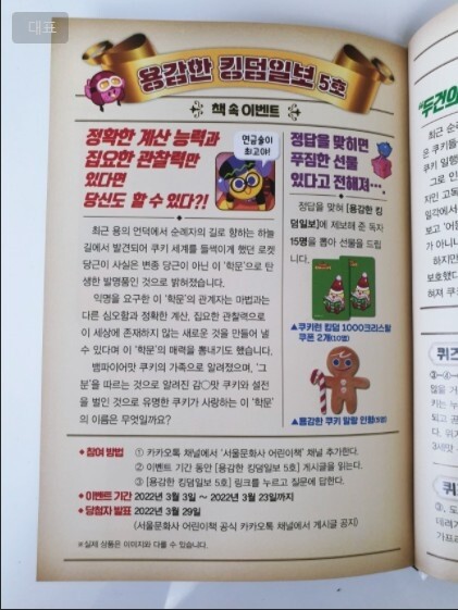 쿠키런 킹덤 5. 순례자의 길 (하편) 은 <킹덤 일보>에서 책 속 이벤트에 참여할 수 있어요~