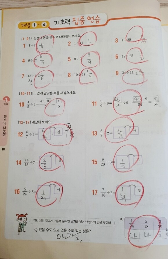 기약 분수로 나타내야 한다고 이야기해주었어요
