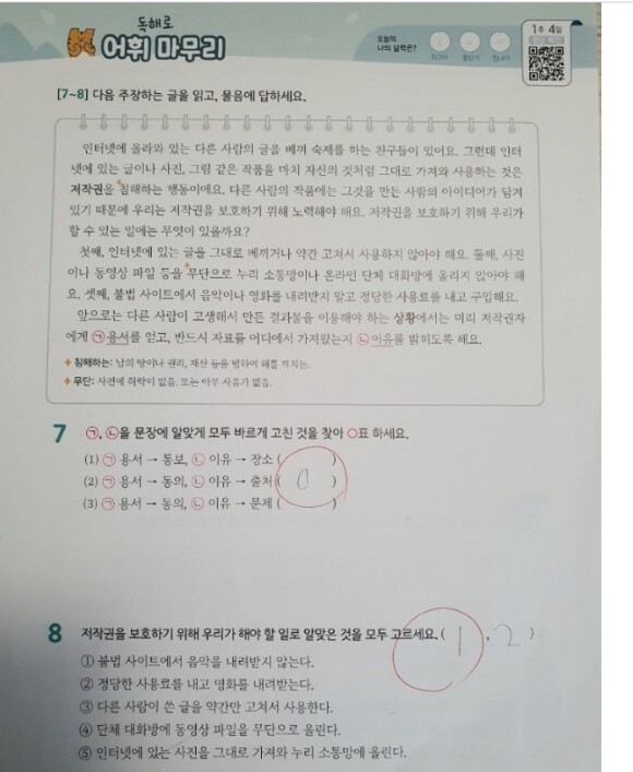 책 맨 뒤 페이지에 있어요